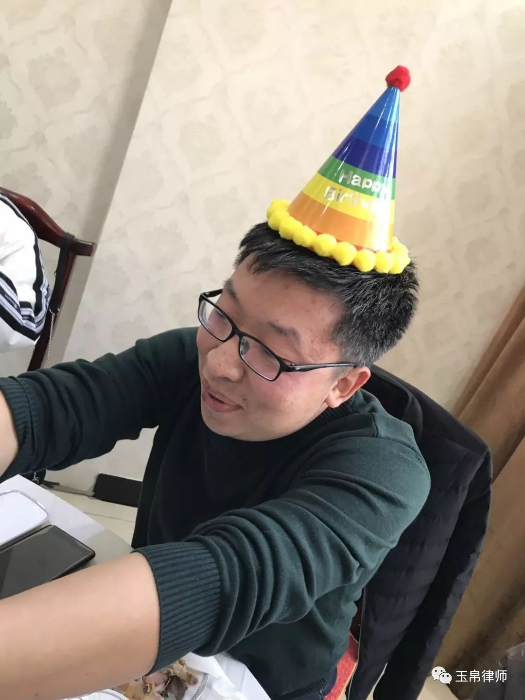 奎文区人民法院刚刚结束整整一上午激烈的法庭辩论,匆忙赶回所里吃午饭的李鹏律师收获一个意外的惊喜,今天是李鹏律师的生日,在家的玉帛同仁们在赶海火锅酒店相聚为其庆生。