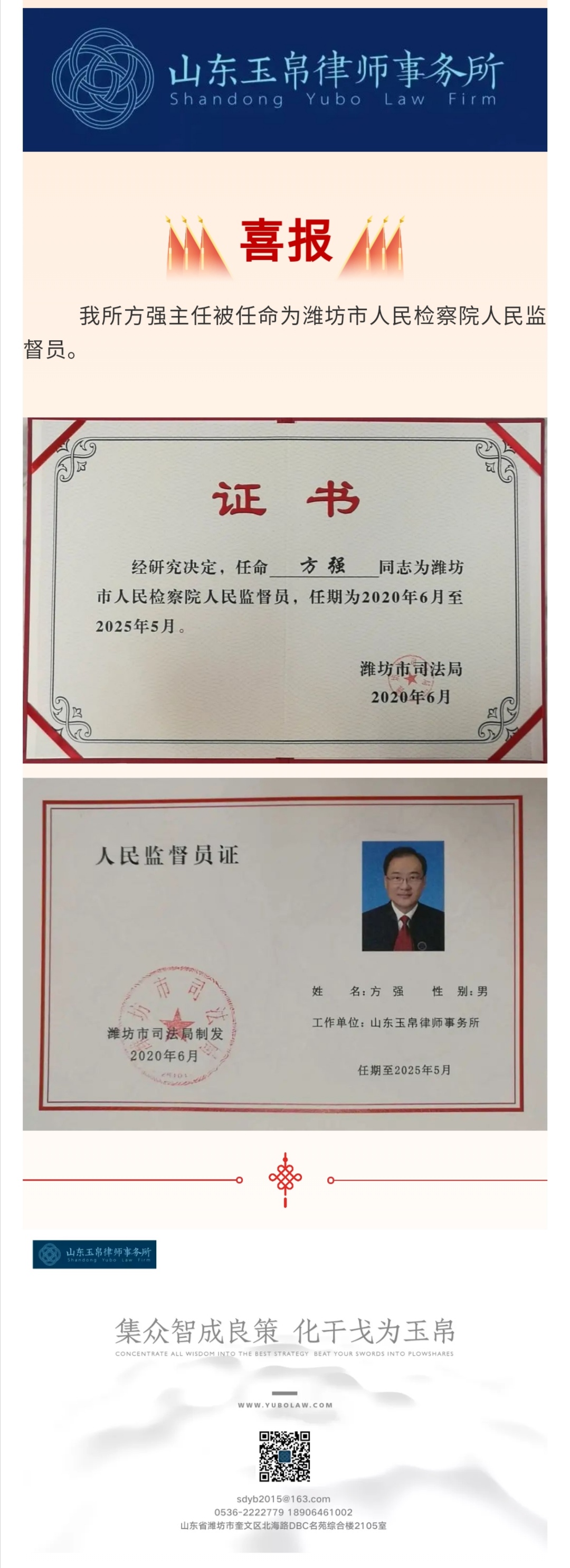 方强主任被任命为潍坊市人民检察院人民监督员