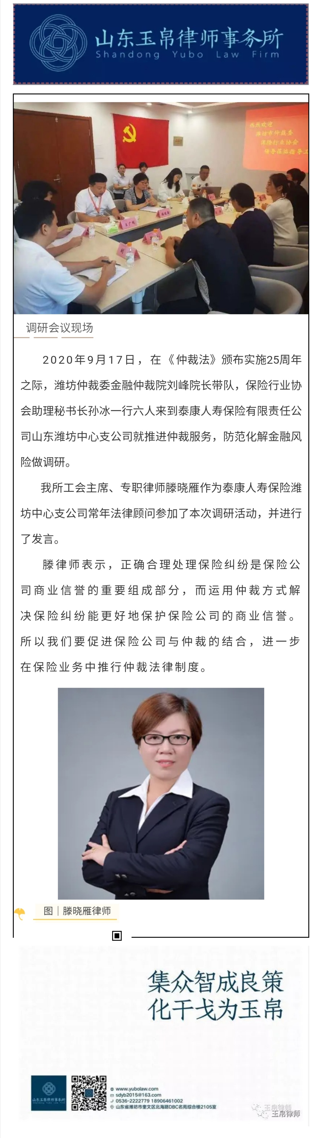 滕晓雁律师参加潍坊仲裁委金融仲裁庭调研活动