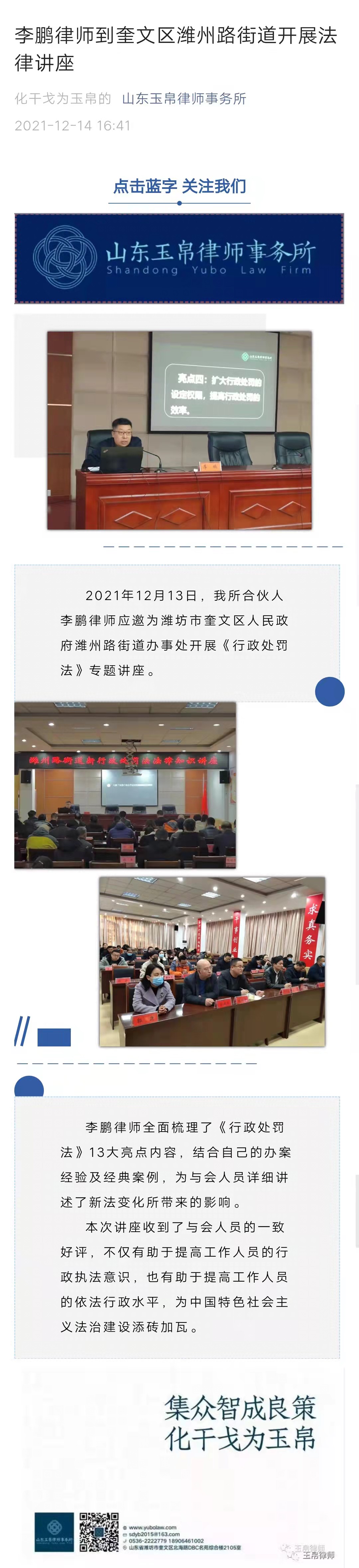 李鹏律师到奎文区潍州路街道开展法律讲座