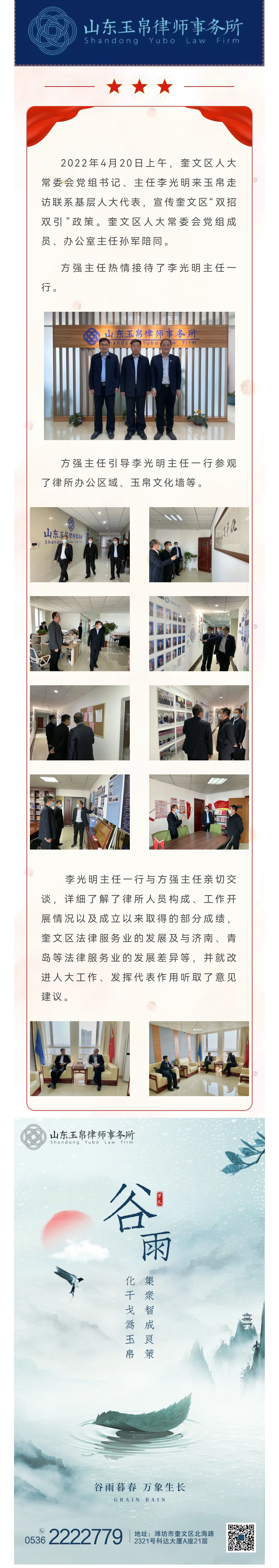 奎文区人大常委会党组书记、主任李光明来玉帛走访联系基层人大代表