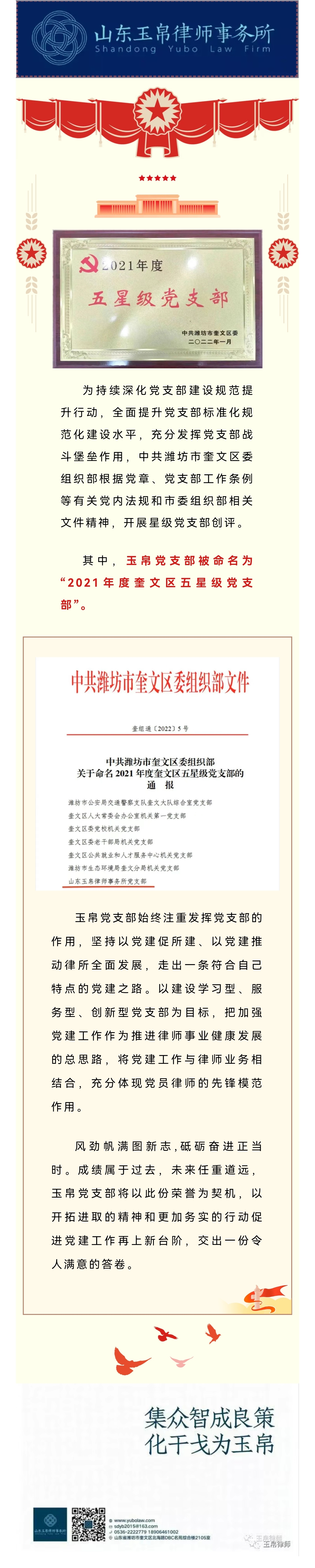 玉帛党支部被命名为“2021年度奎文区五星级党支部”