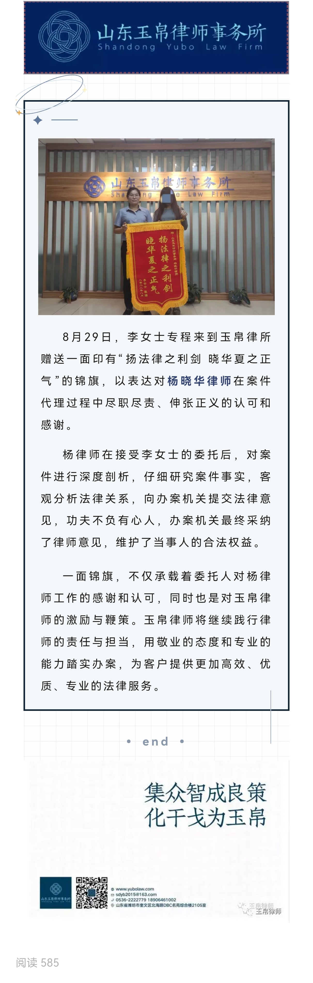 扬法律之利剑 晓华夏之正气—杨晓华律师获赠锦旗