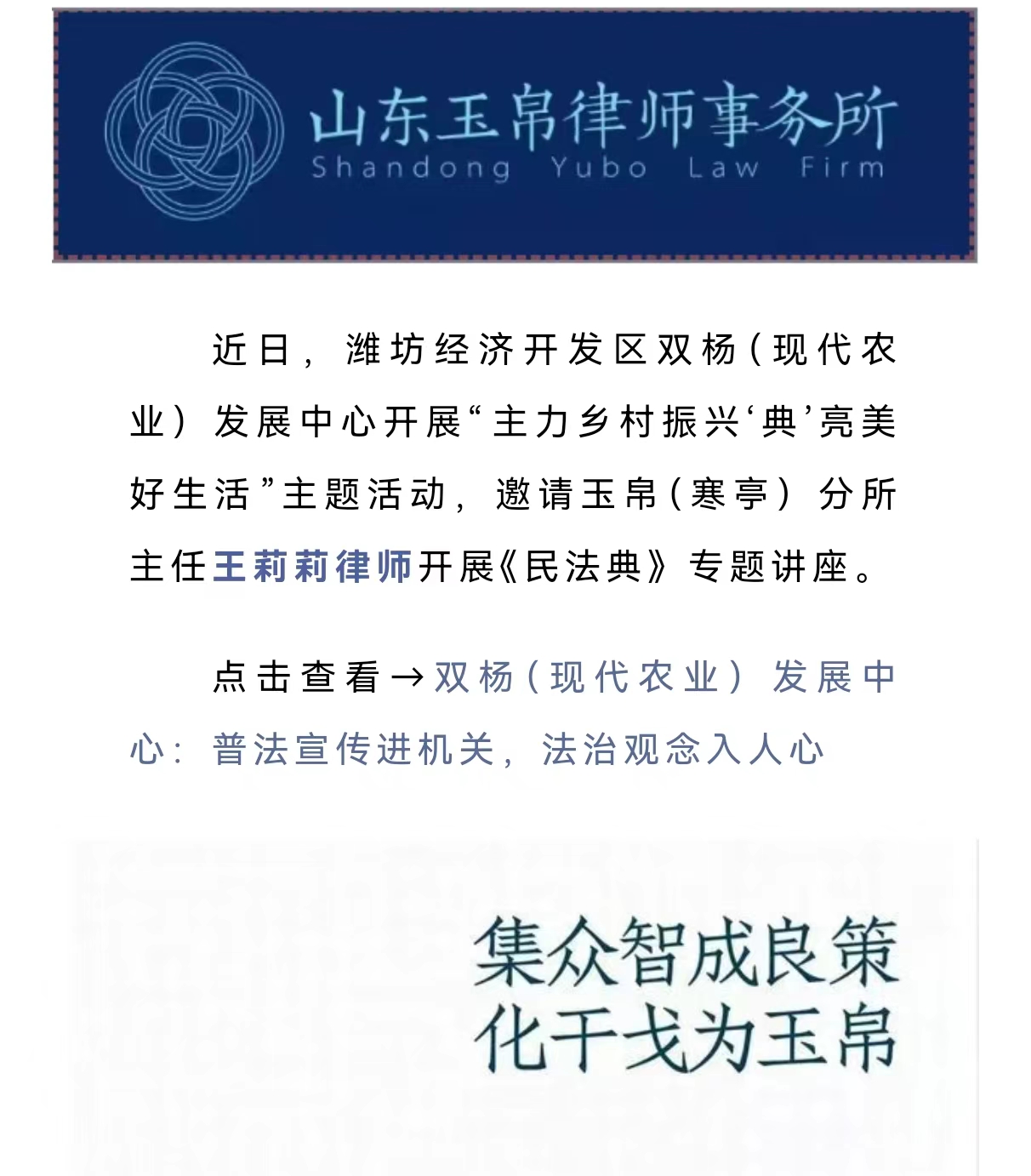 上一篇:维护“她”权益——杜莲莲律师到潍坊市农信联社开展普法宣传