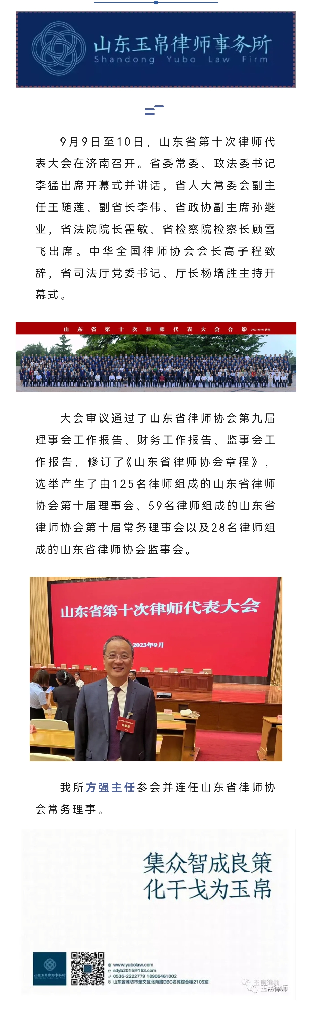 方强参加省第十次律师代表大会并连任省律协常务理事