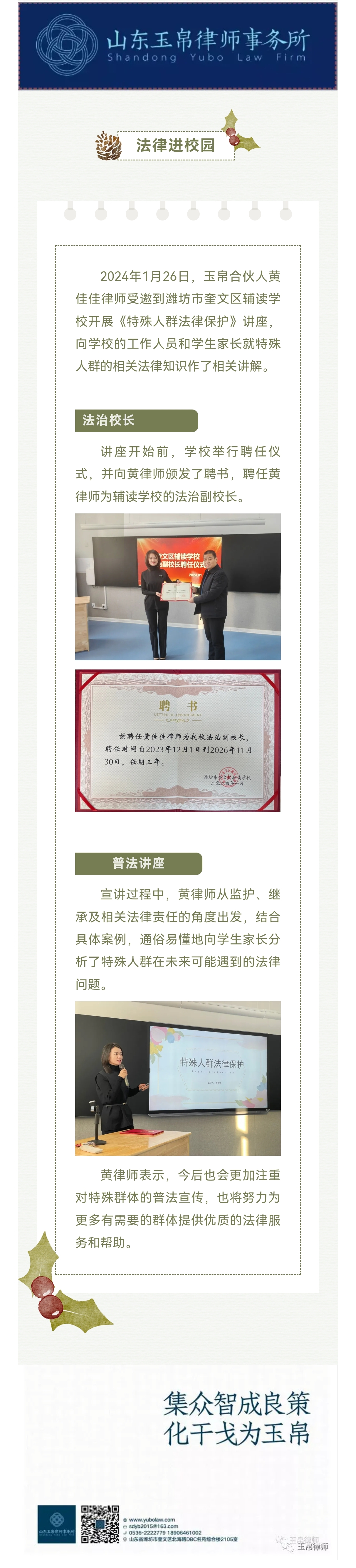 黄佳佳律师获聘奎文区辅读学校法治副校长并开展普法讲座