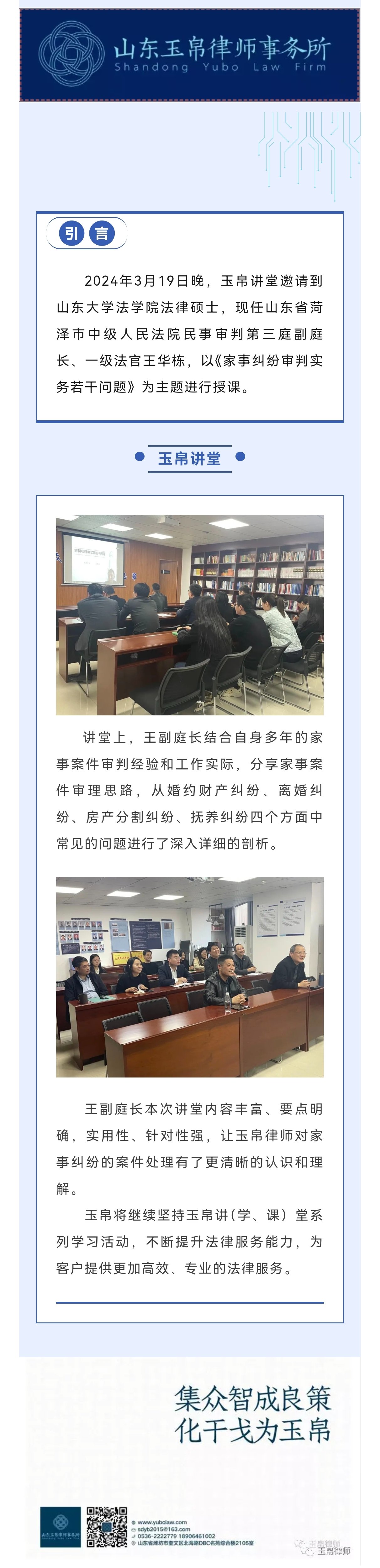 玉帛讲堂邀请王华栋副庭长进行《家事纠纷审判实务若干问题》专题讲座